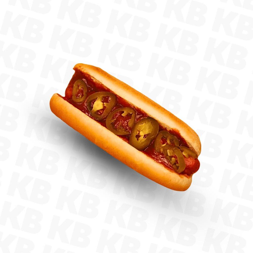 Сосиска, Булочка, Соленый огурец, Перец халапеньо, Кетчуп, Соус сальса